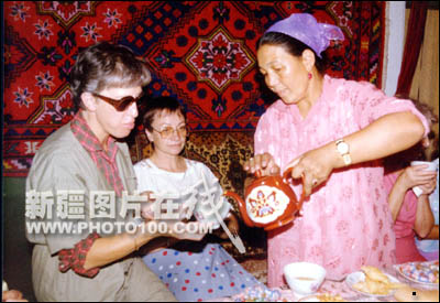 茶在新疆各族人民生活中的地位很重要,有“宁可三日无肉,不可一日无茶”之说,它不仅可以消化肉食,更可补充吃蔬菜少而缺少的维生素。牧民还喜欢饮用压制成砖块状的“茯茶”,色泽红褐,味道香醇,加上鲜奶、奶皮或酥油的“奶茶”,更是常见的饮品。