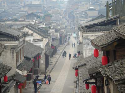 黎平地区的翘街,东起城垣东门,南至二郎坡荷花塘,全长一公里余。此街两头高,中间低,形状如翘起的木扁担,所以称为“翘街”。景区内四合院,鳞次栉比,错落有致,风火墙上翼角飞翘,墙上的彩绘精美细腻,房屋的门窗装饰,图案古朴。此街面为石条和卵石铺墁。翘街的小街小巷数不胜数,著名的有马家巷、姚家巷、张家巷、双井街、左所坡等。