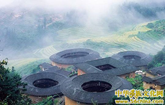 在闽南山区腹地的南靖县,一座座夯土版筑的土楼点缀在小溪旁、田野间,绿树掩映的山脚下,它并不富丽堂皇,却纯朴、宁静,千百年来,巍然屹立。日本建筑学家称它为“天上掉下的飞碟,地上长出的蘑菇。”联合国教科文组织顾问史蒂文斯·安德烈赞叹它是“世界上独一无二的、神话般的山村建筑模式”。