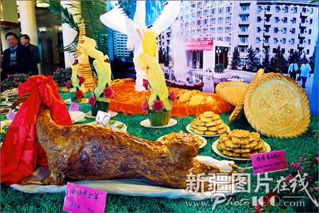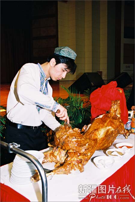 “烤全羊”是最具特色的美食,在招待贵宾的宴会上,是必上的大菜。