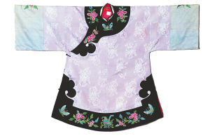 和劳动妇女相比,富裕人家女眷的服饰则更为讲究。流行在河南等中原地区的云肩(披肩或披领),在传习馆里有一个主题展示厅。这些主要以丝缎织锦制作的装饰品,大多数用四个云纹组成,上绣富贵牡丹、多福多寿图案。陪同人员说:云肩的绣制针法就有10多种,如挽针、接针、滚针、松针、钉线、打子、圈金、抢针、齐针等,工艺繁复,令人赞叹。而昔日徽商的富庶,又使得他们的服饰现出与众不同的高贵。传习馆收藏的男性徽商所着长袍,采用织锦缎或丝麻交织上乘面料,上绣同色万字纹、云纹,相互交织又不纠缠,于内敛中暗藏富贵。