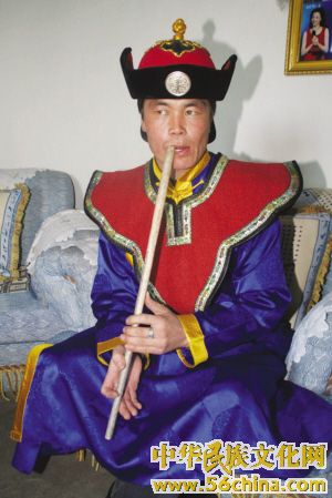 当穿上他那青色的演出服以后,巴图巴依似乎变了一个人,他大方地招呼我们坐下,自己搬了一个凳子,坐在我们对面,清清嗓子,咽下了一口口水,眼睛半闭了起来。