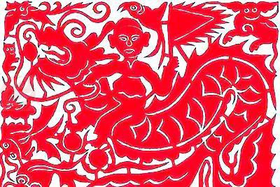 黔东南苗族民间剪纸的独特之处,首先表现在它的题材上,有许多与创世纪和人类起源有关的神话传说。如人头蝶身的剪纸图案,就是苗族古歌中的“蝴蝶妈妈”。传说蝴蝶妈妈是由枫树变的,因和水上的泡沫“游方”(恋爱)怀孕后生下12个蛋。经鹤字鸟替她孵了12年,才生出第一个姜央和雷公,以及龙、虎、蛇、象、水牛、娱蚁等12个兄弟,从此天下便有了人和动物。苗族民间剪纸图案中还有“桑扎射日”的神话,说的是古时候有“日月十二双,日夜不停跑;晒得田水啊,好比开水冒;晒得石头啊,软得像粘糕;晒得坡上啊,草木齐枯焦。”为此,苗族先祖造了一把巨大的弓,请一位叫桑扎的英雄去射日月。当桑扎射掉11对日月以后,剩下的一对日月被吓得藏起来了,天地变得黑茫茫一片,人们无法外出做活路。后来,先祖们请来公鸡,“公鸡拍拍翅,抬头高声喊;早晨哩哩叫,太阳出东方,下午哩哩叫,月亮接着上”。此后,万物得到生长,人类才得到安宁。从蝴蝶妈妈生人类及一切动物到兄妹合磨成亲、桑扎射日月、女人驯龙牛、女人驯象等剪纸图案看,既是对母系社会遗风的追溯,又是反映远古时代人类常与各种野兽和严重旱灾进行生死斗争的形象记录。另外,原始的巫术礼仪作为苗族生活的重要内容,在剪纸中也有较多的反映。苗族是多神论者,崇拜自然物,崇拜祖先,崇拜生命。他们认为人的祸福是由神鬼掌握的,要得福免灾就必须求神的护佑。巫师是沟通人与神的媒介,由他来祭神驱鬼。因此,苗族人对巫师非常虔诚尊重。剪纸中的巫师形象庄严肃穆,身佩执法的长剑,举着装有降伏恶鬼法力的葫芦,显得神秘莫测。这些古拙简朴、粗犷豪放、富有神话和宗教色彩的剪纸图案,充分展示了苗族的独特气质和久远的历史。