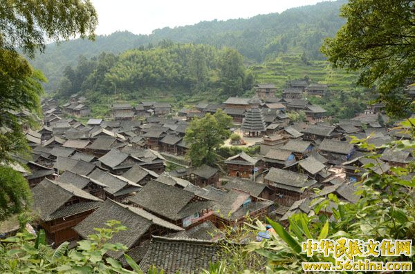 掩映在茂竹修林里的大利侗寨。(2013年8月14日 石庆伟 摄)