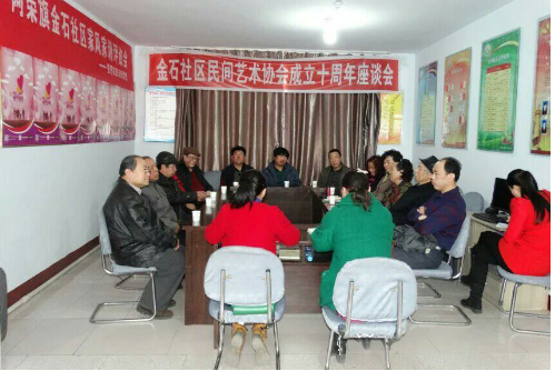 座谈会上,首先由金石社区书记刘晓慧代表协会总结了回顾了协会十年来的发展程,和所收获的各项成绩。之后,张镇长对金石社区民间艺术协会多年开展的各项工作给予了高度肯定,并表示镇党委政府将在今后的工作中一如既往的大力支持。希望协会多创作出能够代表当地特色的艺术作品,更好的弘扬民间艺术文化。会上会员们也纷纷发言,为下一步协会工作提出好的意见和建议,会上还制定出了协会今年的创作方向和展览计划。