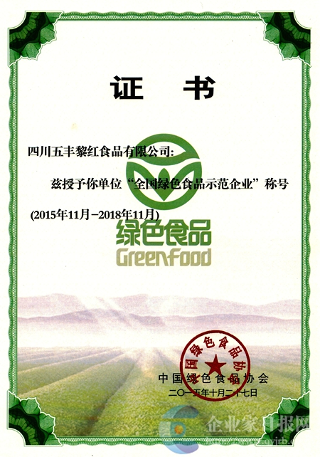 四是硕果结殊荣:经多年努力,公司先后荣获全国绿色食品示范企业、出口食品生产企业卫生备案、FDA注册和美国商标注册、省农产品加工示范企业、省卓 越绩效模式先进企业、省服务业企业50强、省最佳诚信企业、省食品制造业最佳效益10强、省调味品5强、中国川味金骄奖、最佳品牌营销奖、省质量信用等级 AAA级、省“十佳地理标志农产品”,主营产品获国家地理标志保护、绿色食品、清真食品认证、中国森林食品示范品牌,黎红商标历届蝉联省著名商标、省名牌 产品、中国川菜十佳调味品等殊荣。