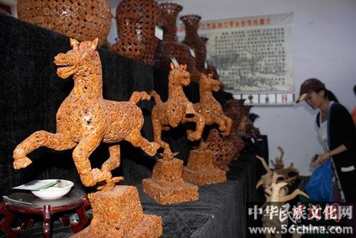 该厂的手工艺品均以该县所产的野生山核桃为原料,利用其独特的纹理和自然镂空效果,以及坚硬的质地制作而成。需洗选、切片、剔果仁、干燥、粘结、定型、抛光、细雕等二十几道工序制作而成。