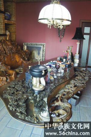 这些树根都是去哪里淘的呀?玩了18年根雕的老赵最早是从印度尼西亚淘了一批“印尼红木”,这批树根被制成记者眼前的这些大花台、博古架、大书桌、贵妃椅等,不但取材于古老的树木残根,而且材质好,根体相对完整,让观者感受强烈。老赵说,如今在印尼淘树根的多为日本人和韩国人,国内根雕玩家则多活跃在云南边境一带。今年,老赵去了三趟云南边境,走进山窝窝里淘树根,最长的一次逗留了近一个月,最后运回上百吨树根。
