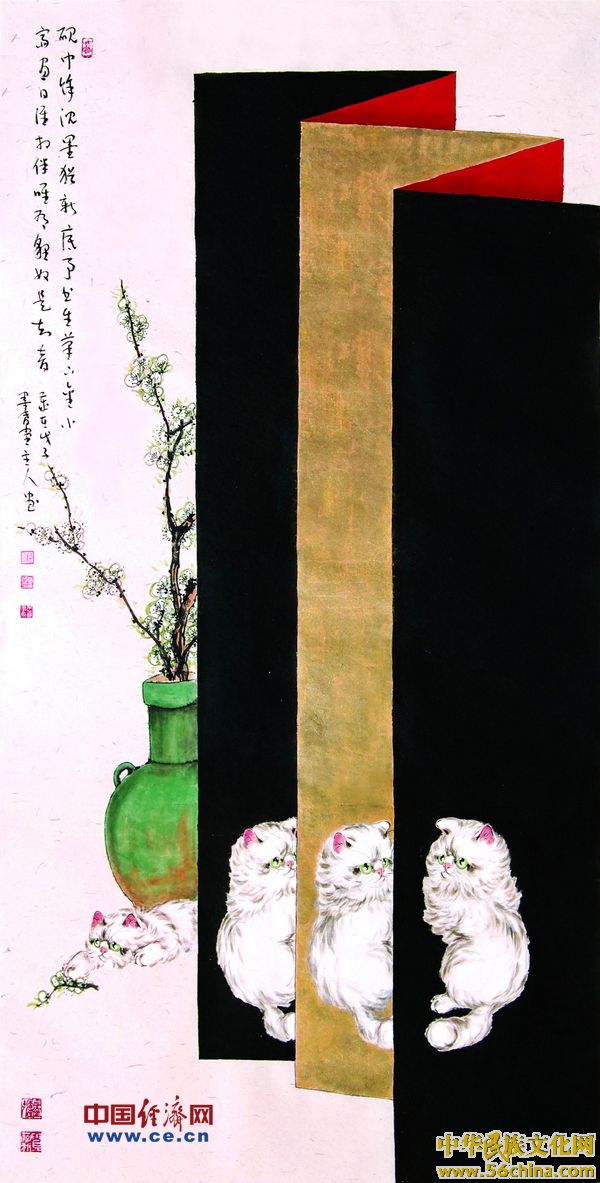 李蕴平的白猫百态 版画+国画:市场潜力巨大