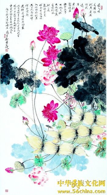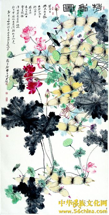 《藕花莲叶图》 95cm×186cm 纸本水墨 2008年
