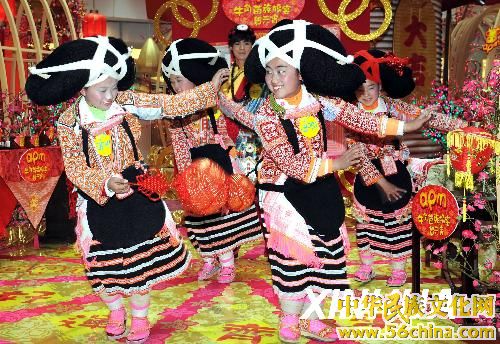 牛角苗是中国贵州苗族古老的一支,因头上盘着牛角式的长发而得名。